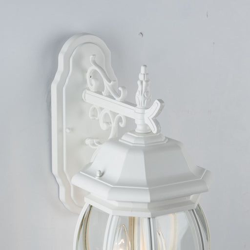 The "Classico" outdoor wall sconce has a traditional design, clear glassware, and is finished in white. This product is backed with an industry lea...