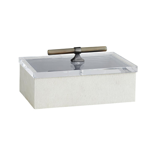 This natural white hide box makes for an exceptionally stylish way to store jewelry or treasured keepsakes. A clear acrylic top fashioned with a na...