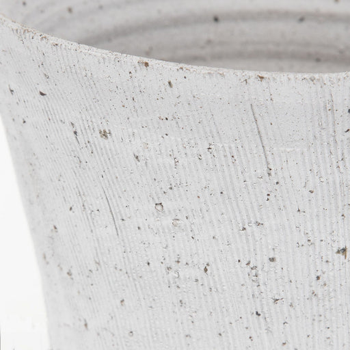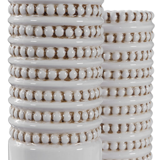 Set Of Two Ceramic Vases Finished In A White Glaze With Taupe Accents, Beaded Texture And A Ribbed Interior. Sizes: S-5x14x5, L-5x18x5Details:Produ...