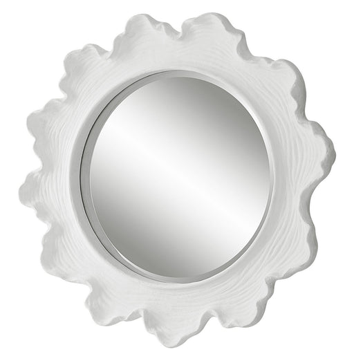 Reminiscent Of White Coral, This Round Mirror Showcases A Contemporary Coastal Design. The Organic Shaped Frame Is Finished In Matte White With Not...