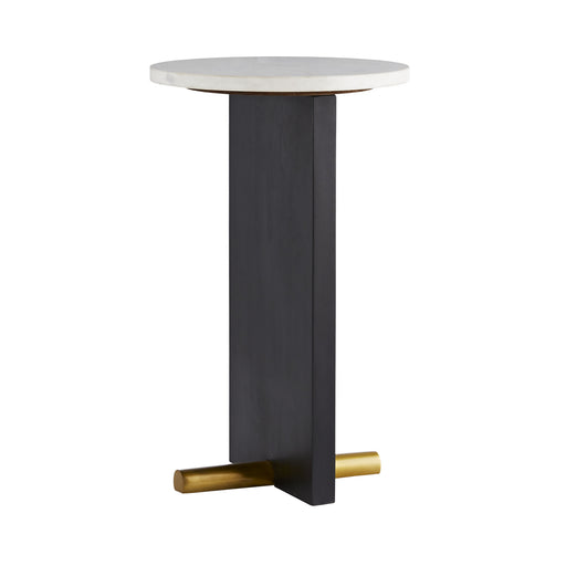 Industrial materials and hand-applied techniques update the classic shape of this enviable end table. The chiseled white marble top sits atop a ped...