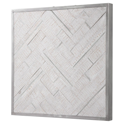 A Collage Of Unique 3-dimensional Pieced Patterns Of Rustic Distressed Fir Wood, Framed In Silver Leaf.Details:Product Type: PlaquesFinish: Silver ...