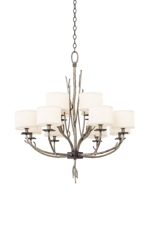 Organic Shapes in Hand Forged Wrought Iron construction. Bronze Jewel Tone with Fabric Shades and Diffuser included.Details:Product Type: Drum Shad...