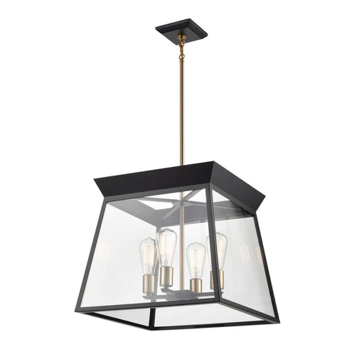 The Lucian collection, designed by Kevin Kraemer, is a modern twist on a classical lantern style light. Shown in a black with brushed brass accents...