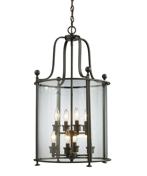 With traditional styling and modern application this eight light pendant is as versatile as it is stunning. Glass panels form the circular cage tha...