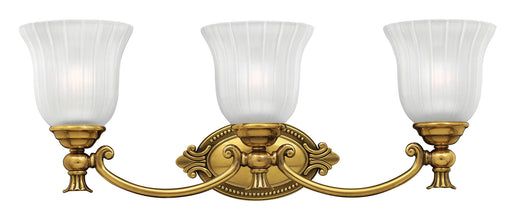 Francoise offers European elegance with decorative cast detailing in a charming Burnished Brass finish. The frosted ribbed glass beautifully contra...