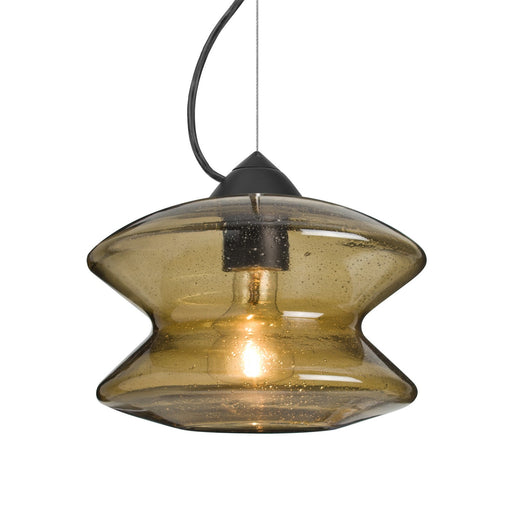 The Zen Latte Pendant is a transitional design composed of a transparent Latte "Hour-Glass" shaped glass , with an interesting bubble pattern blown...