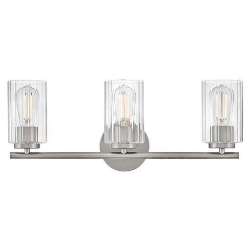 Beaming with low-key luxury, Letaâs clear ribbed glass glimmers with major style. Warm dimmable lamping accented by versatile Black, Brushed Nick...
