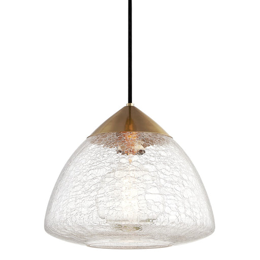 Details:Product Type: Single GlassFinish: Aged BrassShade: Clear CrackleDesigner: MitziMeasurements:Width / Dia: 4.75"Height: 19.00"Length: 4.75"Ex...