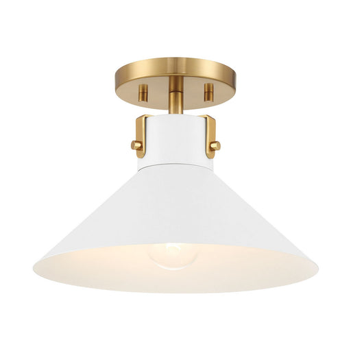 View full detailsMeridian M60078WHNB One Light Semi-Flush Mount, White and Natural Brass