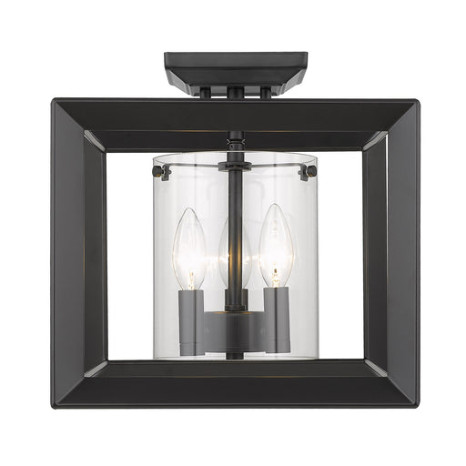 View full detailsGolden 2073-SF12 BLK-CLR Three Light Semi-Flush Mount, Matte Black