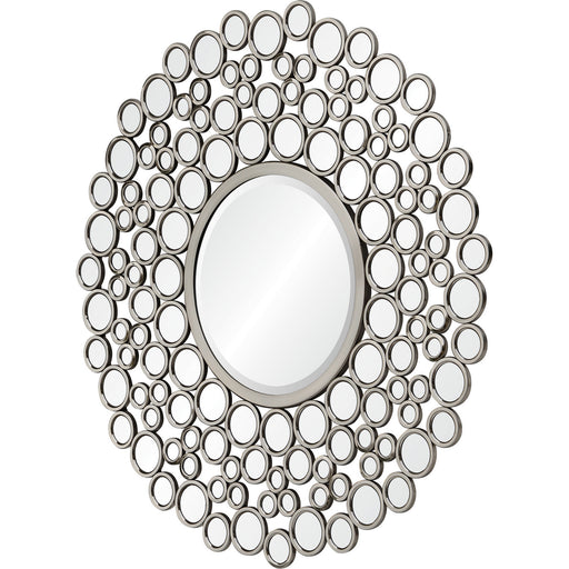This awesome design features dozens of small mirrors and a large beveled round mirror in a satin-nickel plated metal frame. Fashionable and chic, t...