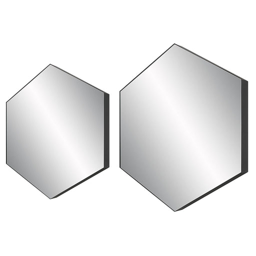This Set Of Two Hexagon Mirrors Are Encased In Thick Iron Bands Finished In A Soft Matte Black. Each Mirror Has A 1" Bevel And May Be Hung Horizont...