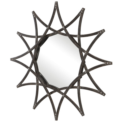 Handcrafted From Forged Iron, This Mirror Showcases A Star-shaped Frame Finished In An Aged Crackled Charcoal With A Light Gray Glaze And Antiqued ...