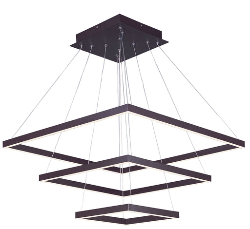 Cubist art reimagined through lighting, the Quad collection features suspended aluminum squares finished in a warm Bronze in multiple tiers, illumi...