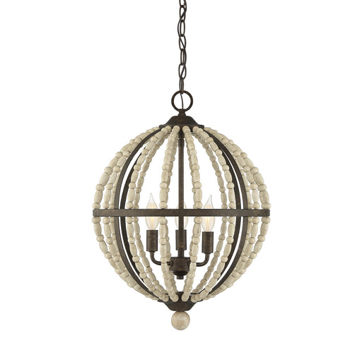 This Meridian 3-light pendant features an orb-shaped design adorned with rows of beads and is given a distressed Avignon finish that makes it a cha...