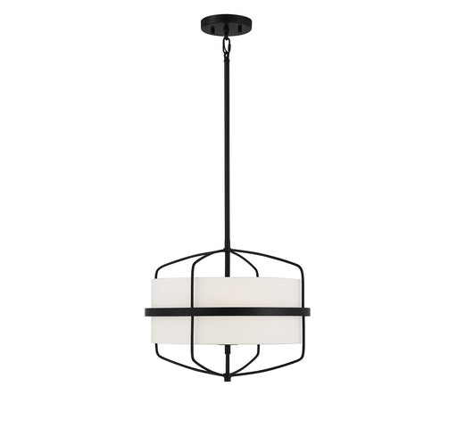 Pep up the lighting style in any room with this chic Meridian 4-light pendant. Pairing a drum-shaped shade of white fabric with a matte black finis...