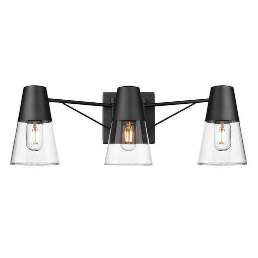 View full detailsGolden 2124-BA3 BLK-CLR Three Light Bath Vanity, Matte Black