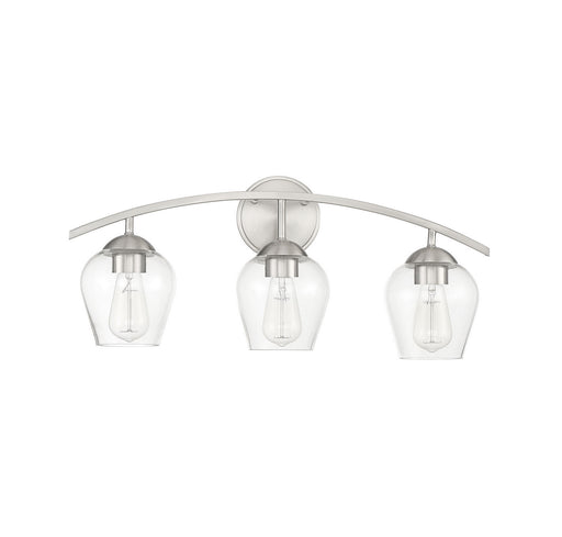 Shape up your bath lighting style with this 3-light bathroom vanity light! Between the curving arm, the wineglass-style clear glass shades and the ...
