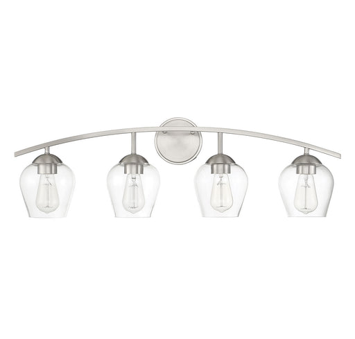 Shape up your bath lighting style with this 4-light bathroom vanity light! Between the curving arm, the wineglass-style clear glass shades and the ...