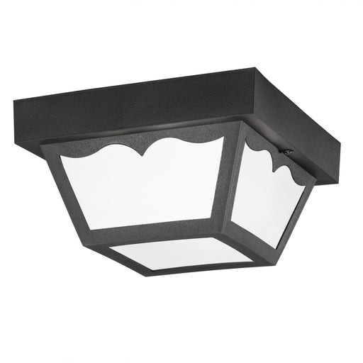 8.5" 1 light outdoor polypropylene flush mount features a classic look with its Black finish and frosted glass. This outdoor flush mount features a...