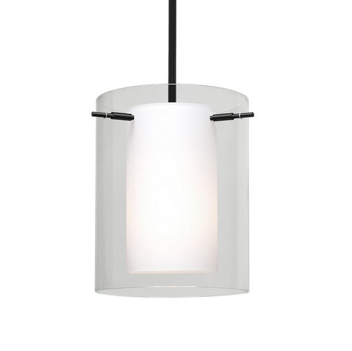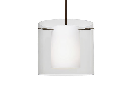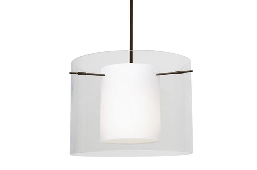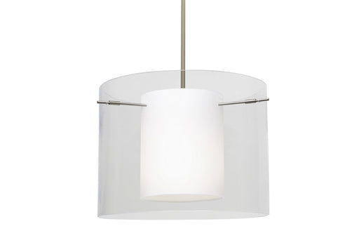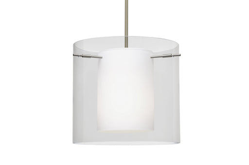 The Pahu is a distinctive double-glass pendant, with an inner opal cylinder centered within a transparent outer glass. The clear blown glass comple...