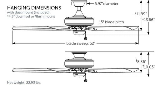 View full detailsFanimation FP9052MWW 52" Ceiling Fan, Matte White