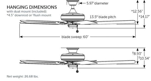 View full detailsFanimation FP9060MWW 60" Ceiling Fan, Matte White