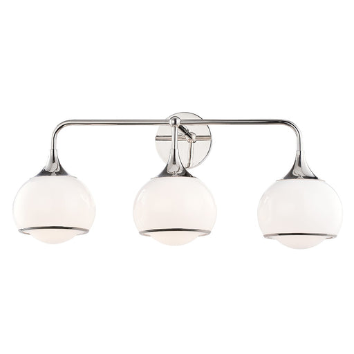 Details:Product Type: Three LightsFinish: Polished NickelShade: Opal GlossyDesigner: MitziMeasurements:Width / Dia: 26.75"Height: 11.25"Extension: ...
