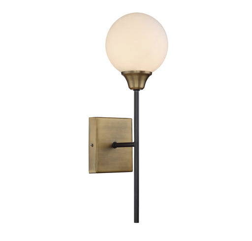 This sleek, chic 1-light sconce flaunts a white opal orb-shaped glass shade and the two-tone style of an Oil Rubbed Bronze finish with Natural Bras...