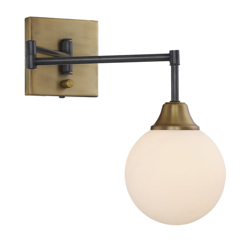 This sleek, chic 1-light swing-arm sconce flaunts a white opal orb-shaped glass shade and the two-tone style of an Oil Rubbed Bronze finish with Na...