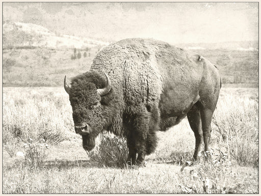 A sepia-toned art print of a wild buffalo brings the rugged terrain of the Old West to refined interior walls. Painted accents capture the animal g...