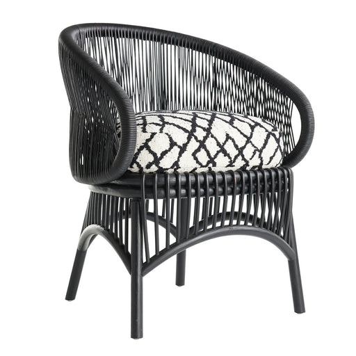 Inspired by Danish cord-wrapped seating, traditional rattan construction is used to create this modern accent chair. Cross-woven black rattan wraps...