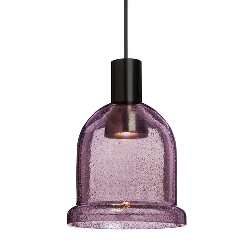 The Kiba Plum Mini Pendant is a transitional design composed of a transparent Plum glass Bell, with an interesting bubble pattern blown randomly th...