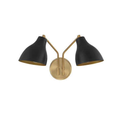 This Meridian 2-light wall sconce showcases curving vintage-inspired shades and is finished in a stylish pairing of matte black with natural brass....