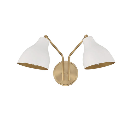 This Meridian 2-light wall sconce showcases curving vintage-inspired shades and is finished in a stylish pairing of white with natural brass. Perfe...