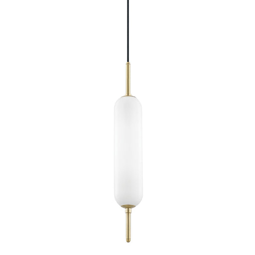 Details:Product Type: CableFinish: Aged BrassShade: Opal GlossyDesigner: MitziMeasurements:Width / Dia: 4.00"Height: 26.75"Chain: 120"Wire: 120"Can...