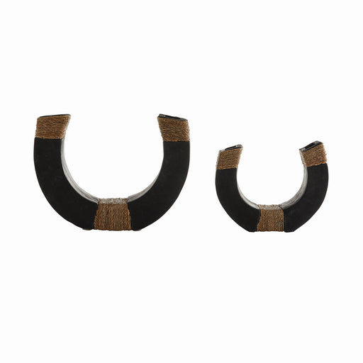 Unique in design and in styling, this pair of vases are a charming addition to a space. Each is inspired by lucky horseshoes crafted from terracott...