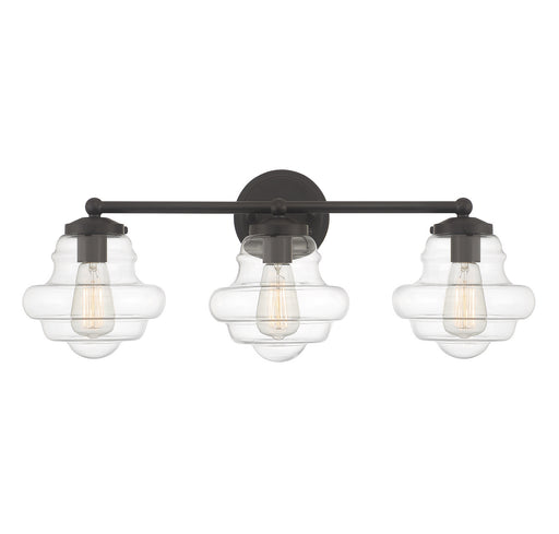 Bring a bold touch of vintage schoolhouse style to any space with this 3-light bath vanity light. It features an oil rubbed bronze finish and curvi...