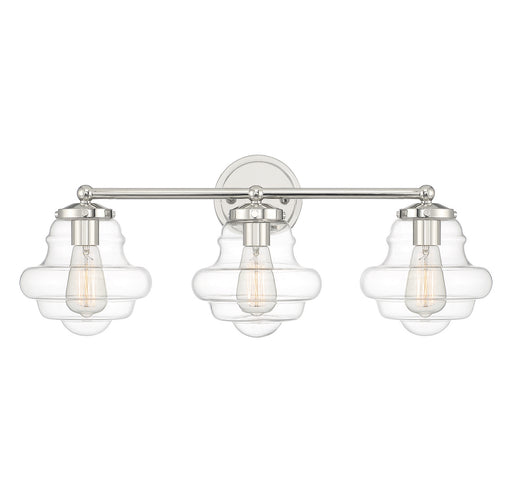 Bring a bold touch of vintage schoolhouse style to any space with this 3-light bath vanity light. It features a polished nickel finish and curving ...