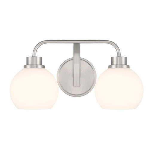 Freshen up your bathroom with the sleekly timeless style of this 2-light bath bar, which features orb-shaped shades of white opal glass that are op...