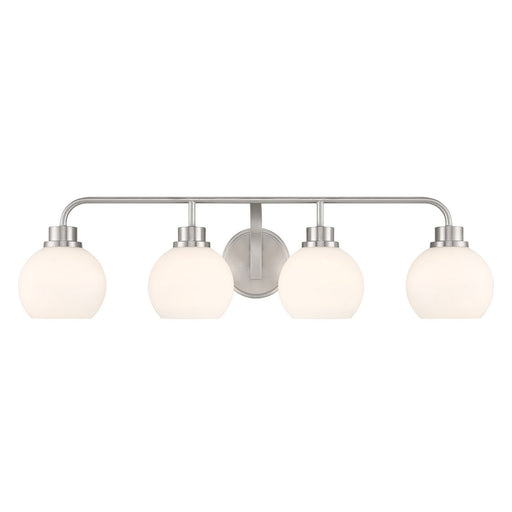 Freshen up your bathroom with the sleekly timeless style of this 4-light bath bar, which features orb-shaped shades of white opal glass that are op...