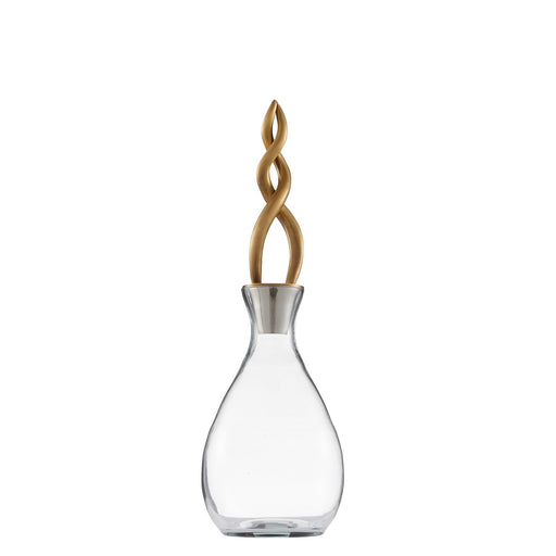 A pair of smoke-luster glass decanters is a dynamic addition to any tabletop tableau. Jewelry-inspired vintage brass stoppers twist and spiral upwa...