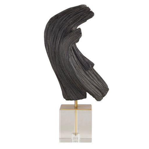 A sinuous resin form of ebony faux wood is cast to resemble natural driftwood. Designed with a swooping form that reflects movement, this eye-catch...
