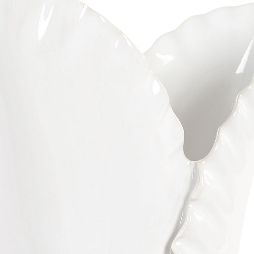 This Set Of Two Beautifully Crafted White Ceramic Vases Captures The Delicate Beauty Of Nature. Inspired By Long Elegant Leaves Found In Nature. Th...