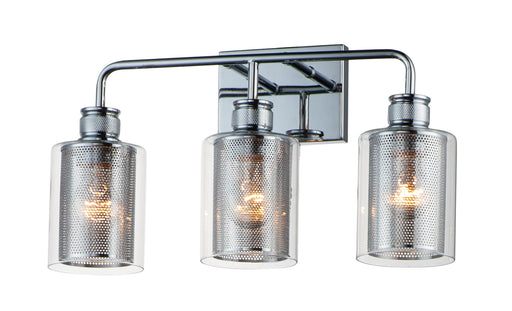 Clear glass cylinders lined with mesh screen are supported by knurled cups of Polished Chrome creates a contemporary design with an industrial twis...