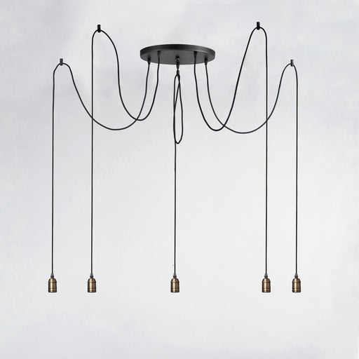 Cords of Black fabric support metal sockets finished in a natural Antique Brass allow you to create unique and fun lighting. All except the single ...
