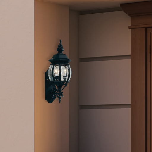 Classico European styled wall mount exterior fixture with clear glassware in black finishDetails:Product Type: Wall MountFinish: BlackRooms: Exteri...