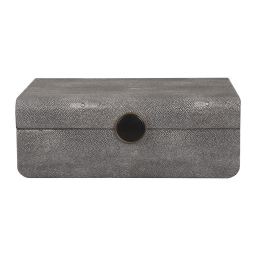 Inspired By The Art Deco Era, This Decorative Box Showcases A Faux Smoke Gray Shagreen Wrapped Surface Accented By A Brushed Antique Brass And Blac...