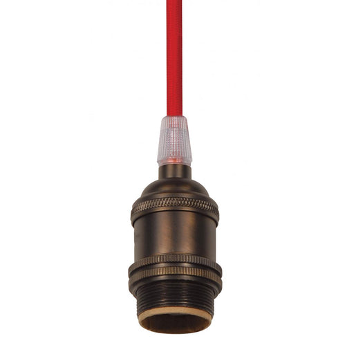 Medium base lampholder - 4pc. Solid brass - prewired - Uno ring - 10ft. 18/2 SVT Red Cord - Dark antique brass finishDetails:Product Type: Accessor...